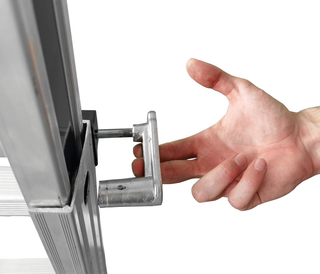 Utilizzabile come scala d’appoggio e scala a cavalletto per scale. Giunto in alluminio facile da usare, a scatto, in due posizioni. Altezza di lavoro regolabile a intervalli di pioli. Distanza tra i pioli: 300 mm. Compatta da chiusa.